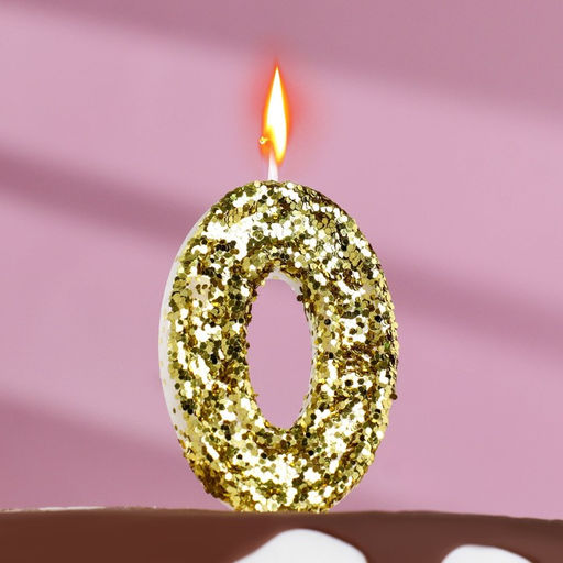 Свеча в торт Блестки, цифра "0", золото, 5,5 см