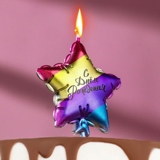 Свеча в торт "С днем рождения. Звезда", 5,5 см, разноцветная