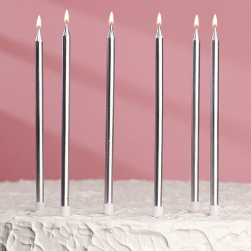 Свечи в торт "Ройс", 6 шт, высокие, 13 см, серебристый металлик