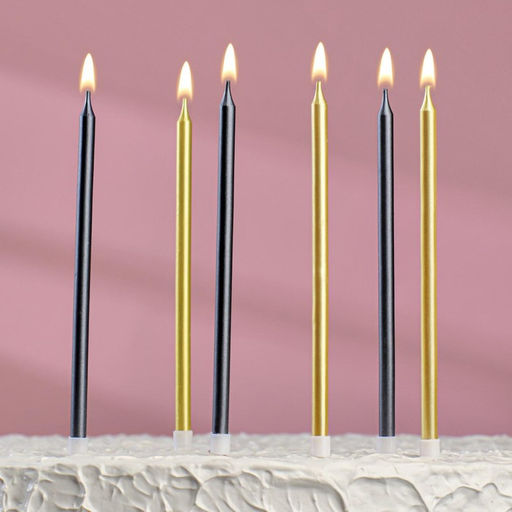 Свечи в торт "Ройс", 6 шт, высокие, 13 см, чёрные и золотые