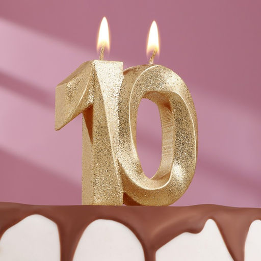 Свеча для торта юбилейная "Грань", цифра 10, золотой блеск, 8см
