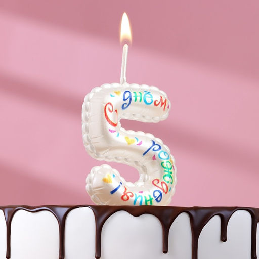 Свеча в торт на шпажке "Воздушная цифра.С Днем Рождения!", цифра 5