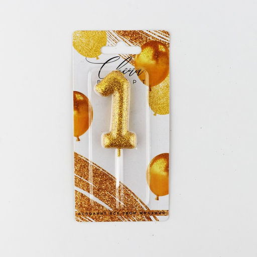 Свеча-цифра в торт блестящая 1, золото, 4 х 10 см