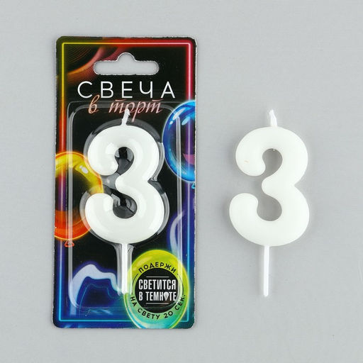 Свеча-цифра в торт 3 , светится в темноте, 4 х 10 см