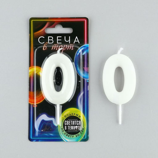 Свеча-цифра в торт 0 , светится в темноте, 4 х 10 см