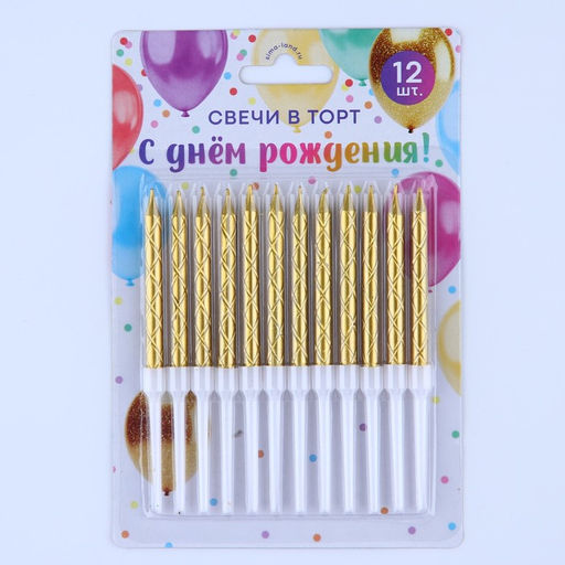 Свечи в торт, золото, 12 шт., 11,5 х 17 см