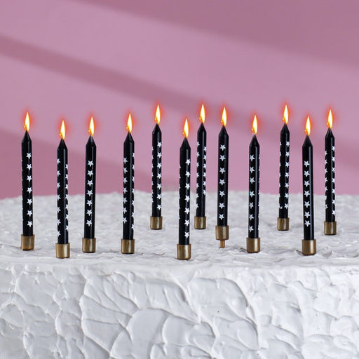 Свечи в торт "Золотая звезда", 6 см, 12 шт, чёрные