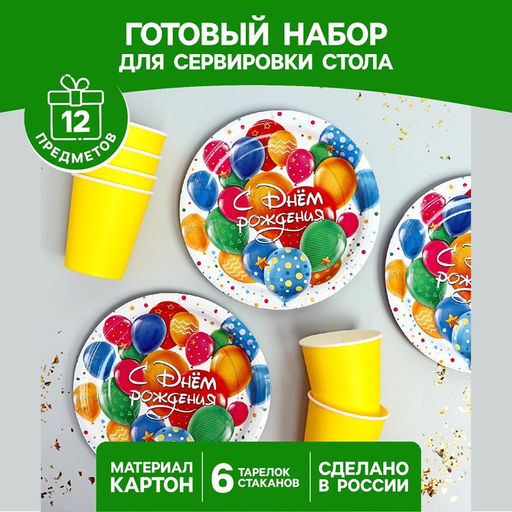 Набор бумажной посуды С днём рождения, шарики