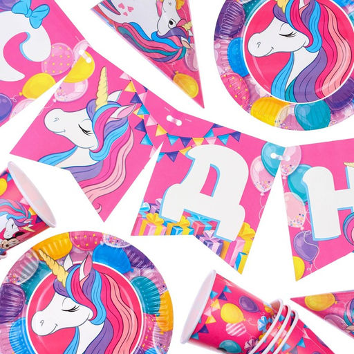 Набор бумажной посуды, на 6 персон "С Днем Рождения", Минни Маус и Единорог