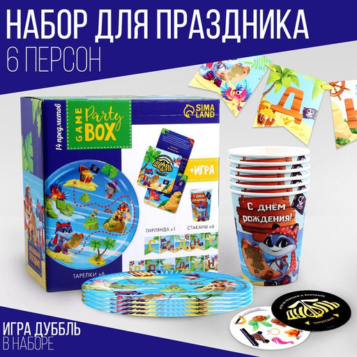 Набор бумажной посуды Сокровище пиратов: 6 тарелок, 6 стаканов