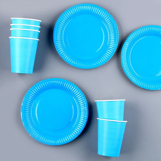 Набор бумажной посуды: 6 тарелок, 6 стаканов, цвет голубой