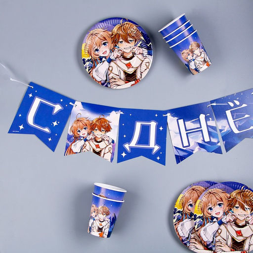 Набор бумажной посуды Аниме: 6 тарелок, 1 гирлянда, 6 стаканов