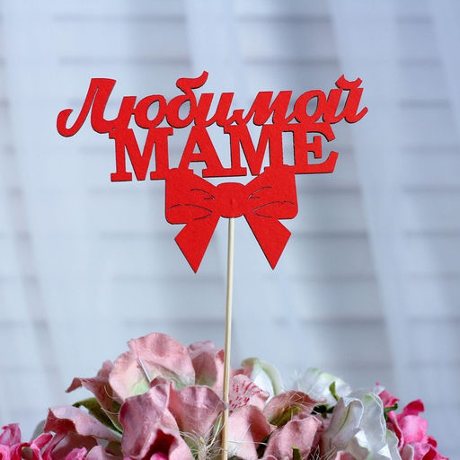 Цена за 10 шт. Топпер Любимой маме, красный, 12,58 см