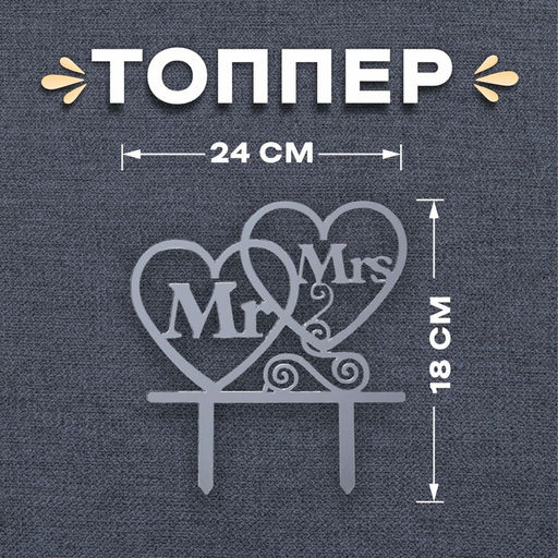 Топпер в торт Mr&Mrs, цвет серебряный