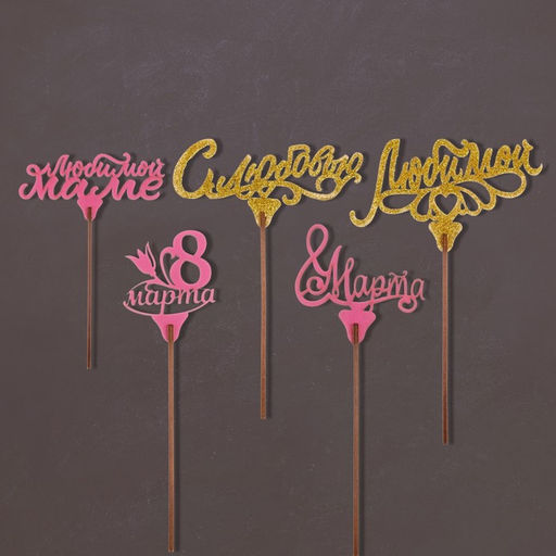 Цена за 5 шт. Топперы Ассорти 8 марта, МИКС