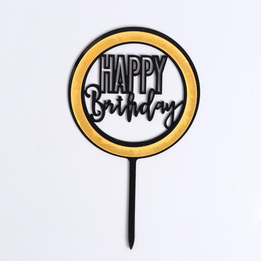 Топпер С днём рождения, круг, цвет чёрно-золотой