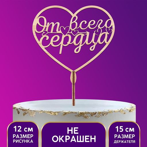 Цена за 5 шт. Топпер деревянный От всего сердца