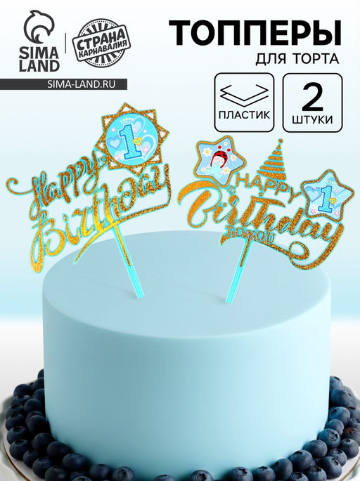 Набор топперов С днём рождения, 1 год, для мальчика, 2 штуки