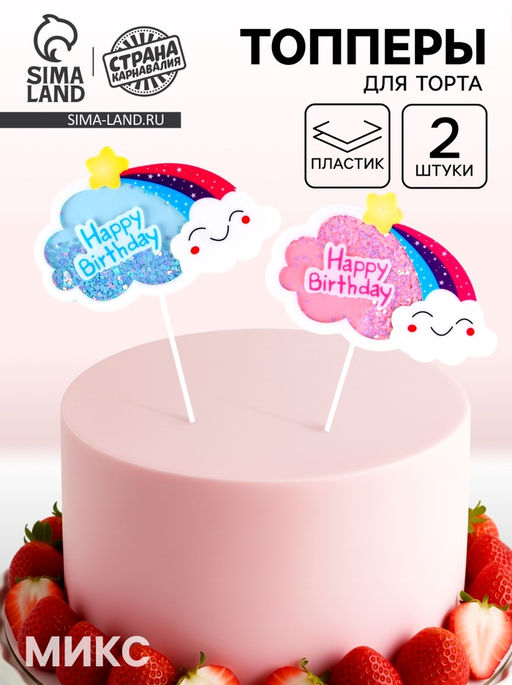 Набор топперов С днём рождения. Облака, 2 шт., цвета МИКС
