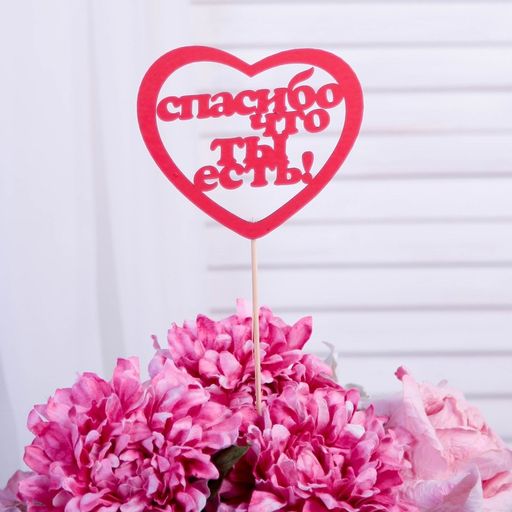 Цена за 10 шт. Топпер "Спасибо, что ты есть" красный 11,3х10 см