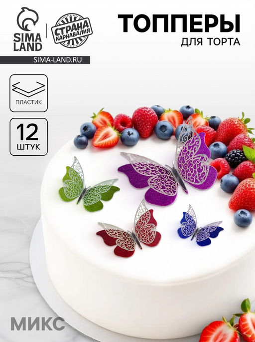 Набор для украшения Бабочки, серебряный слой, 12 штук, цвета МИКС