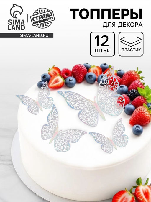 Набор для украшения Бабочки, 12 штук, голография, цвет серебро