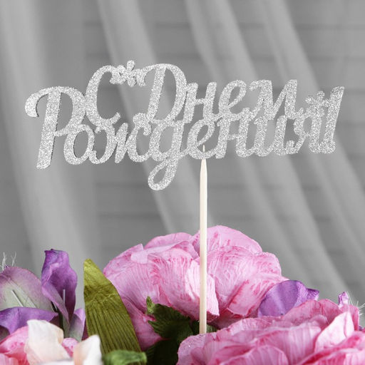Цена за 10 шт. Топперы, серебряный глиттер, со шпажкой, "С днем рождения" 13х5,4 см