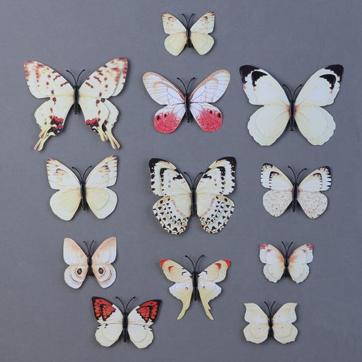Набор для украшения Бабочки, 12 шт, с чёрными вставками, цвет белый