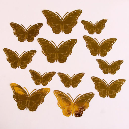 Набор для украшения Бабочки, 12 штук, цвет золото