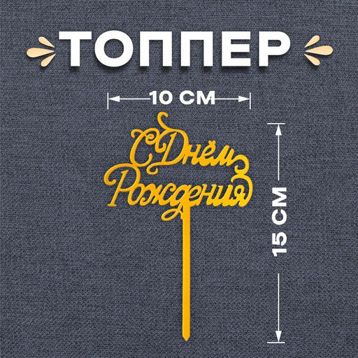 Топпер С Днём Рождения, цвет золото