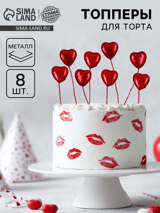 Набор для украшения торта Сердца, в наборе 8 шт.