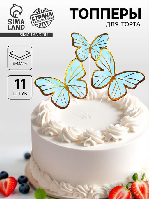 Набор для украшения торта Бабочки 11 шт., цвет голубой