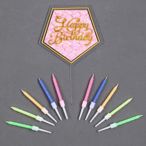 Набор для украшения торта: топпер С днём рождения, 1 шт., 10 свечей