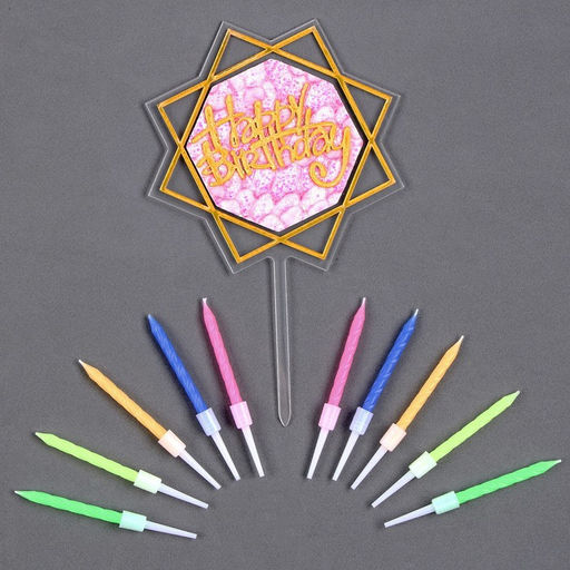 Набор для украшения торта: топпер С днём рождения, 1 шт., 10 свечей