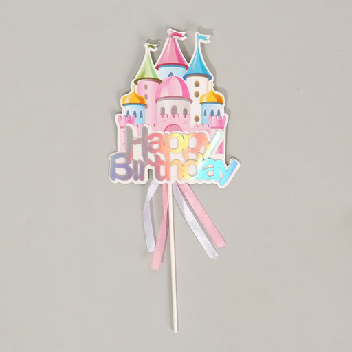 Топпер С днём рождения. Замок с лентами