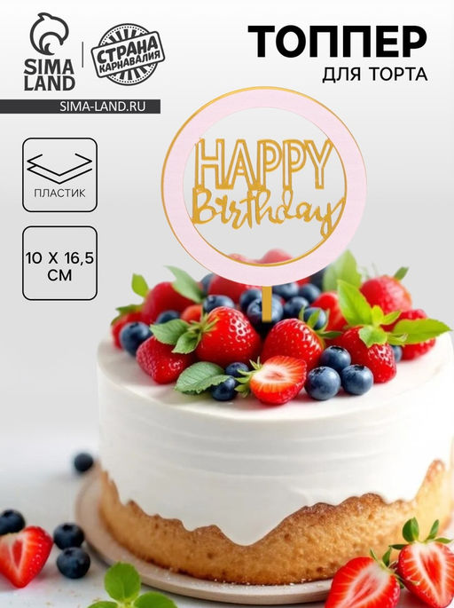 Топпер С днём рождения, цвет золотой