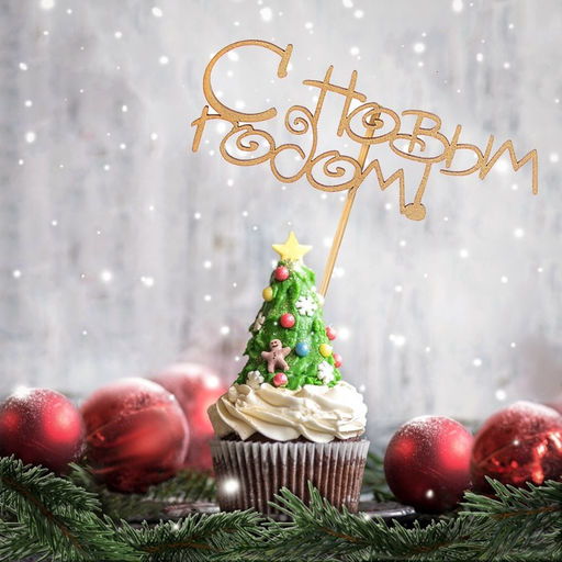 Цена за 3 шт. Топпер "С Новым Годом!", золотой, в пакете с подвесом, 124,5см Дарим Красиво