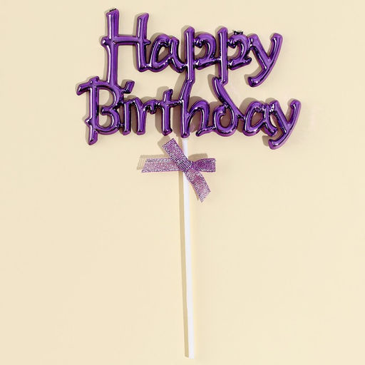 Топпер С днём рождения с бантиком, цвет фиолетовый
