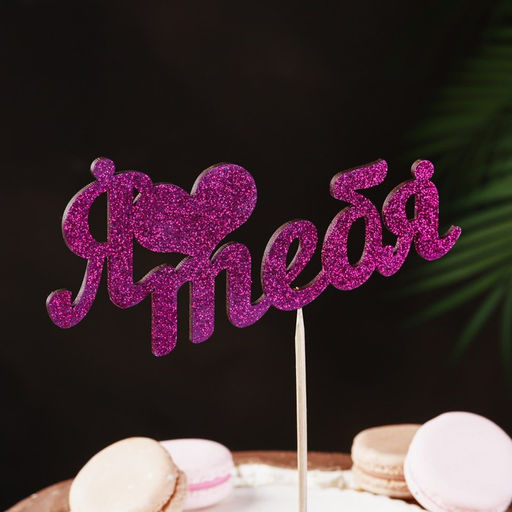 Цена за 10 шт. Топпер "Я люблю тебя" фиолетовый глиттер 15х7,3 см