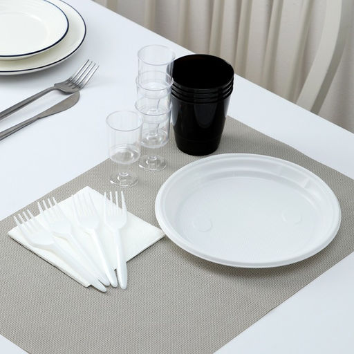 Набор одноразовой посуды премиум Доляна Фуршет, 4 персоны, тарелки, вилки, стаканы 200 мл, рюмки 100 мл, салфетки