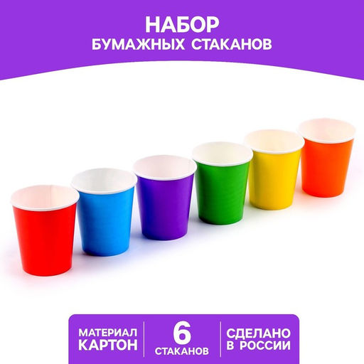 Набор бумажных стаканов Разноцвет, 250 мл, МИКС