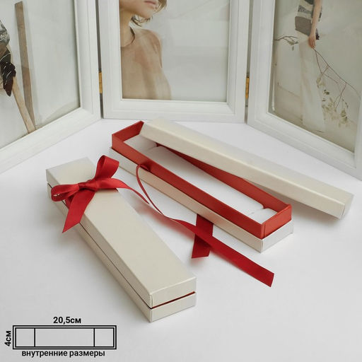 Цена за 6 шт. Коробочка подарочная под браслет/цепочку/часы "Лента", 21х4 (размер полезной части 20,2х3,8см), цвет бело-бордовый