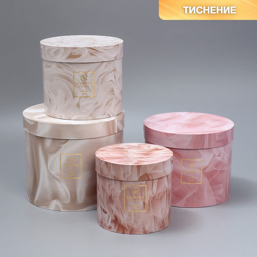 Набор шляпных коробок для цветов 4 в 1 Текстурный, 14 13 см - 20 17,5 см
