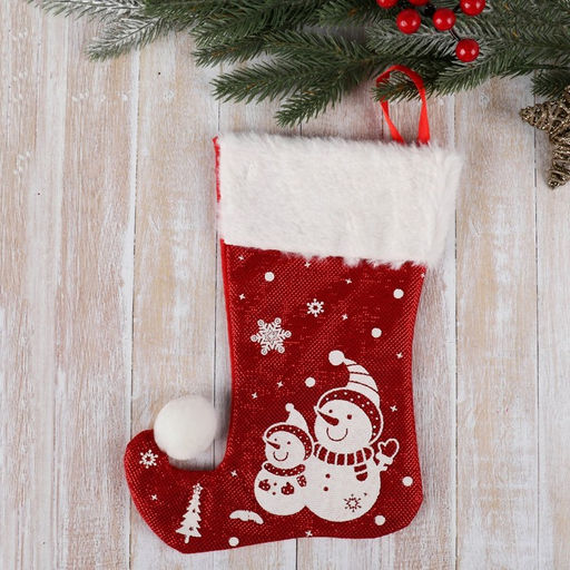 Носок для подарков "Волшебство" Снеговики, 18х25 см, бело-красный
