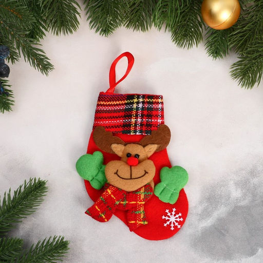 Носок для подарков "Лосяш в варежках" 11х15 см, красно-зелёный