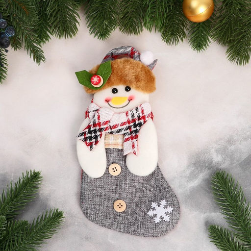 Носок для подарков "Снеговик с ягодкой" 11х26 см, бело-серый