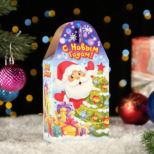 Цена за 10 шт. Коробка подарочная складная "Шарики-Фонарики" 11 х 6,5 х 22 см