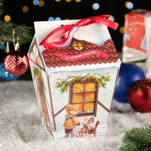Цена за 10 шт. Подарочная коробка "Праздничный домик" бежевый с бантом, 14 х 14 х 21,3 - 9,6 х 9,6 х 22 см
