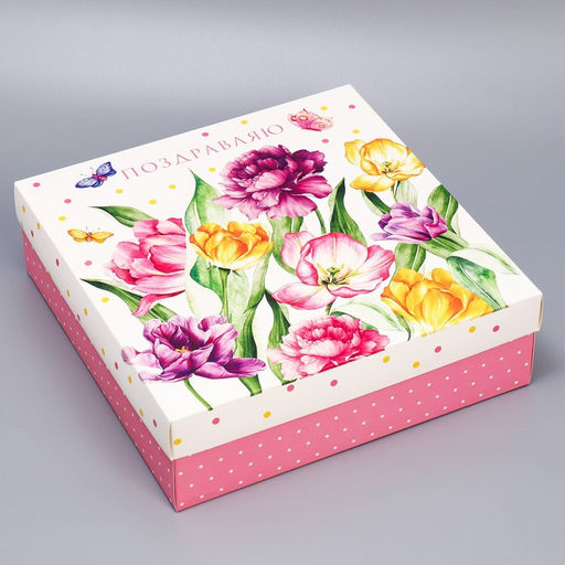 Коробка складная Цветы, 26 х 26 х 8 см