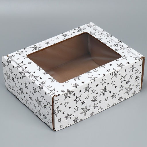 Цена за 5 шт. Коробка сборная с окном Звезды, белый ,27х10х21 см